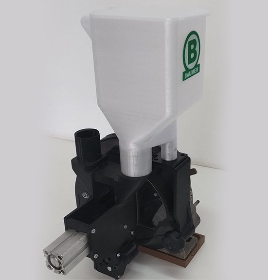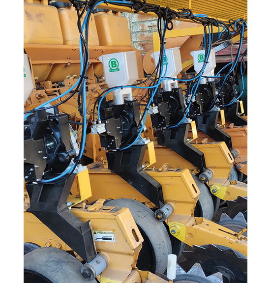 • Embudo alimentador de aluminio o plástico, con exclusivo acomodador de semillas