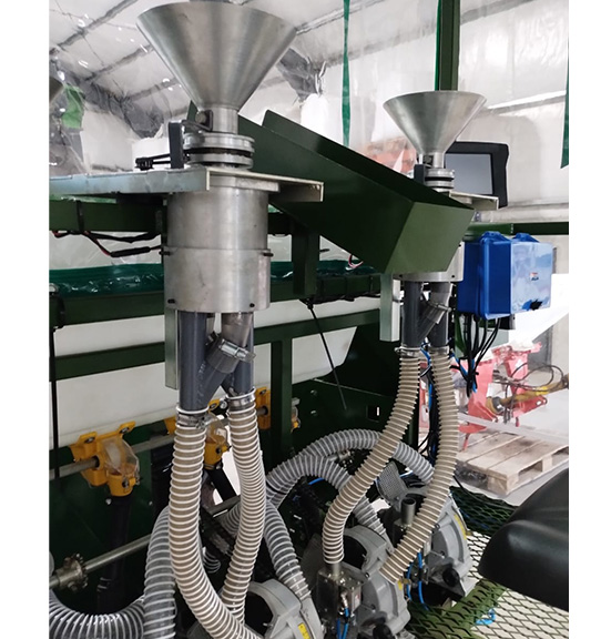 • Con dos tolvas plásticas anticorrosión, y dosificadores tipo chevrón. Cajas de cambios para dosis de