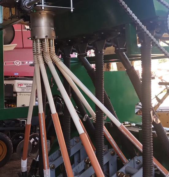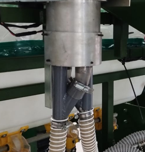 • Salidas de diámetro mínimo 32 mm. Conectan con los dosificadores neumáticos mediante tubos telescópicos 32/40 mm, o tubos flexibles de igual medida.