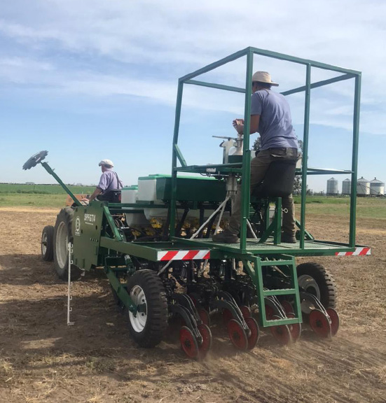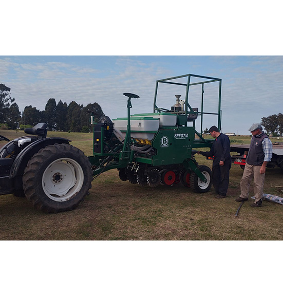 • Sembradora experimental para granos finos, de 7 hileras regulables a 20/21 cm de separación